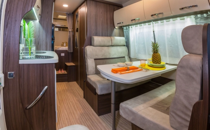 Fiat platforma 2,2 JTD 140KM je primeren tudi za potovanja v zimskem času, saj ima veliko nastavljivo in ogrevano garažo. V dolžino meri 699 cm, Nudi vam popolno razkošje prostora s 6 ležišči in 6 homologiranimi sedeži. Popolnoma opremljen za brezskrbno potovanje v vseh letnih časih.